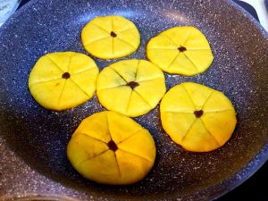 锅中烧油,油温6成放入南瓜饼小火慢炸!一定一定一定小火哦!