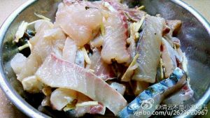 鱼肉片用少许生粉、盐、酱油、醋、姜丝腌制十分钟。