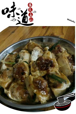 如图两面都煎好后,关小火,调料:放适量盐二勺酱油和芡粉二勺水调好,均匀淋在豆腐上,在焖几分钟就可以了。有砂锅的可以装到砂锅里焖味道更好了
