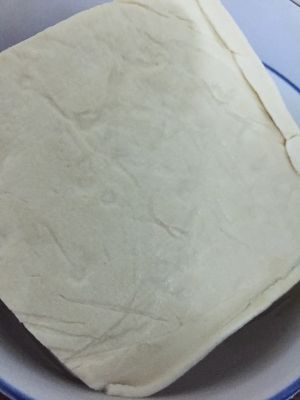 买了两大块老豆腐,泡盐水,去豆腥味,也让它没那么容易烂。