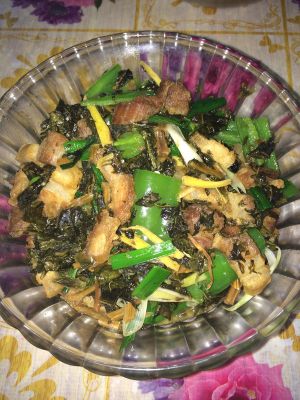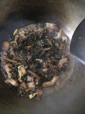 加入少许开水后在加入菜干翻炒!