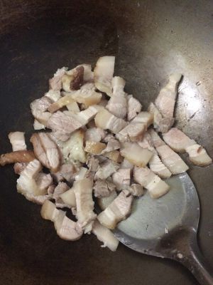 倒入梅菜翻炒