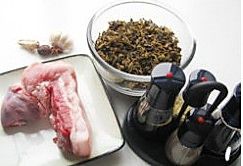 五花肉,加入姜、八角、草果,在清水里煮30分钟