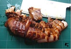 炒锅放油,可以适当多点,开中火,油烧热,放入抹好老抽的五花肉炸,记住肉皮朝下,迅速盖上锅盖(油会到处蹦,盖锅盖防止烫伤),等锅里没有听见油蹦的声音了就可以揭开锅盖,翻面炸,最好每个面都炸下,有点硬为好,但是不要炸过了。