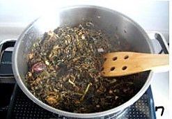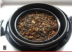 热锅热油,爆香蒜茸、八角,放入梅菜、白糖炒匀,加入肉汤烧5分钟