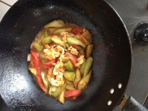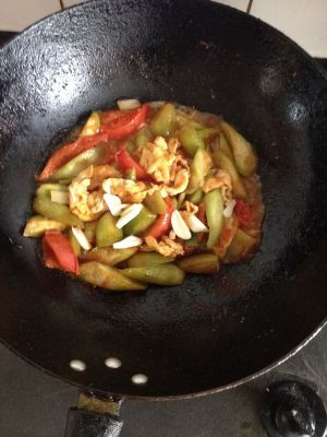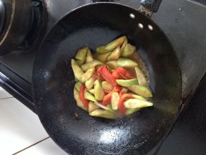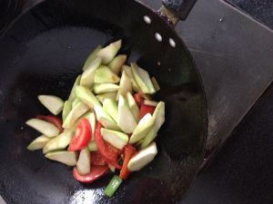 丝瓜切滚刀,西红柿切块,葱姜蒜切好备用