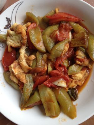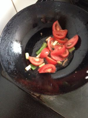 西红柿两个中号的就够,我用了一大两小,自然成熟软硬适中的西红柿味道最好,生硬的发绿的是不能吃的哦。另外还有鸡蛋两个,葱蒜少许