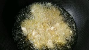 放几粒花椒小火炸一下,把花椒捞出。放葱姜蒜炒香。