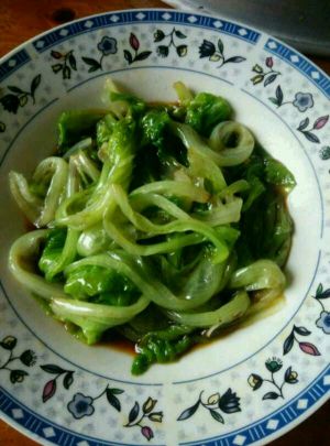 生菜装盘后,拿调配好的酱油 蚝油 油加一点刚煮生菜的水搅拌一下,然后淋在生菜上面就可以吃了。