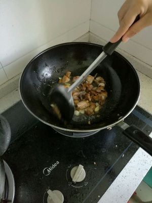翻炒后倒入一听可乐,加料酒,酱油,醋和少量盐,大火烧开后转小火盖好锅盖慢炖30分钟 (可根据自己口味调整佐料用量)
