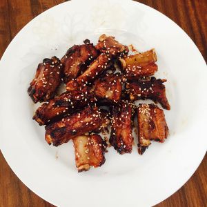 在煮排骨的时候可以开始调汁。我忘拍照了,实在是对不起…比例就是1勺料酒,2勺生抽,3勺白糖,4勺醋,5勺清水,搅拌均匀即可。