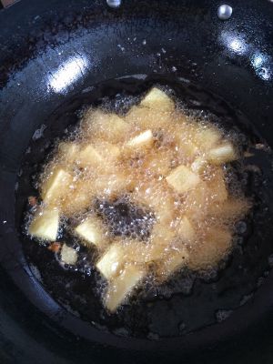 把士豆也下锅炸一下
