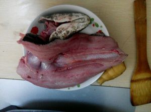 将新鲜的鲤鱼去鳞和内脏,跺去鱼头,(可以让卖鱼的帮你干),然后清洗干净。