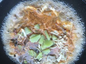 放入金针菇莴笋香菇。大火煮5分钟入味。