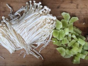 金针菇和莴笋切好洗干净。发现家里还有4个香菇就一起放进去了。
