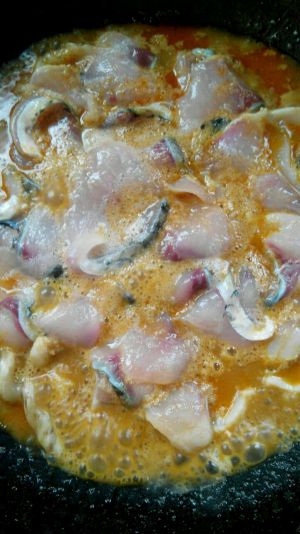 放入清水,待水开后放入鱼片,待鱼片开始翻滚变色。