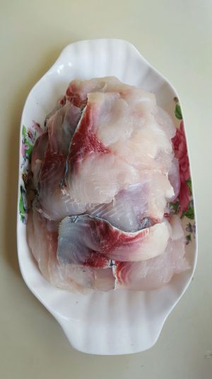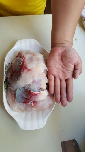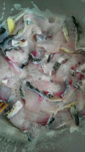 草鱼剔骨,切薄片。用盐抓洗,再用清水洗干净。用蛋清腌制,可放几片姜片,不用加盐