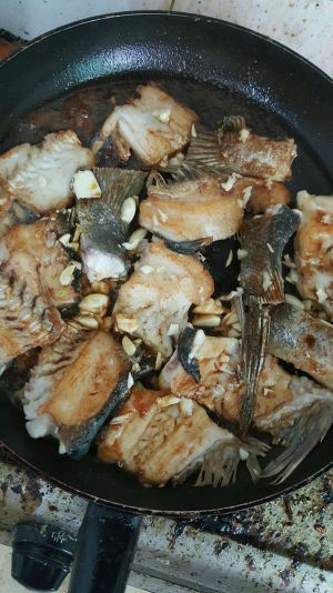 鱼上放葱姜蒜,热油,浇热油,出锅。完美。