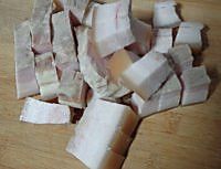 五花肉切块腌制15分钟左右,放开水里过水,颜色稍变捞出,放在旁边待用