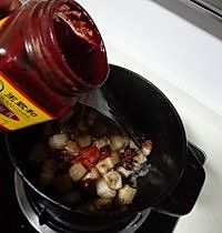 5-10分钟,锅里的水开始咕嘟时,放入肉和肉汤,将锅里的食材全部搅匀,然后小火闷20分钟左右,最后放鸡精,出锅