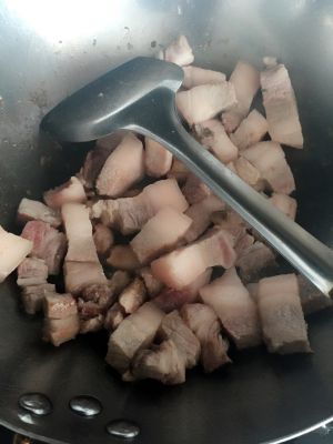 把前腿肉,放入锅中翻炒!