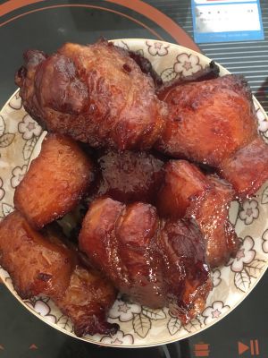 蜜汁叉烧馅:叉烧肉200g(将里脊肉或五花肉用李锦记叉烧酱腌渍2~3天后,用烤箱或平底锅煎熟即成) 李锦记叉烧酱一大勺、蜂蜜一大勺在锅里小火炒匀,用水淀粉勾浓欠待用