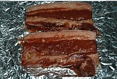 烤箱预热200度,烤盘上铺锡纸,放入腌好的五花肉烤约15分钟。翻面,刷上一层腌料,再烤15分钟。取出刷蜂蜜,两面各烤5分钟就行。