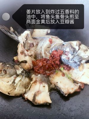 倒油入锅,加热后放入小红辣椒姜蒜大葱白花椒八卦大料郫县豆瓣爆炒,炒出红油香味就放水进去,水煮开多熬会儿就把鱼头放进去,依次放鱼排鱼片,煮几分钟,再放入嫩姜丝小红辣椒青辣椒芹菜煮一分钟就起锅