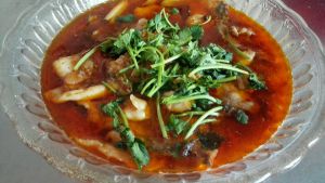 油热,依次放花椒,姜蒜,泡椒泡姜