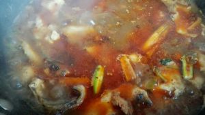 过程,在加酱油,胡椒粉,盐,味精,等炒好以后再加入热水煮开