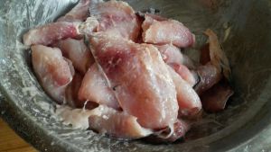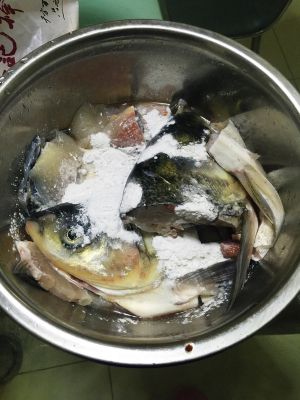 鲤鱼去腮去内脏去头去骨,清洗干净后用厨房用纸吸一下水份