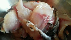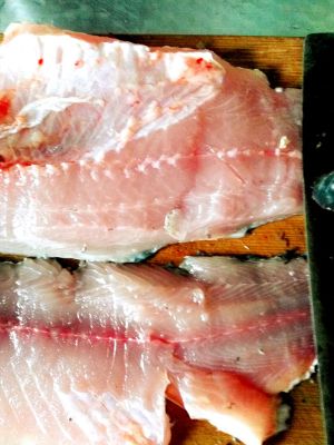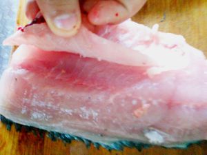 把鱼肉切下来,嘿嘿我第一次这样切鱼,切的不好