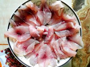 将鱼切成鱼片,加料酒,盐,蛋清,淀粉搅拌均匀,腌制20分钟