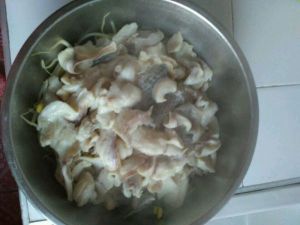 草鱼清洗干净,把鱼头和鱼骨放一起,鱼片另放,用鸡蛋清,胡椒粉,料酒,花椒粉,淀粉,适量的蒸鱼豉油放入鱼片中,用手揉和入味,腌制十五分钟。