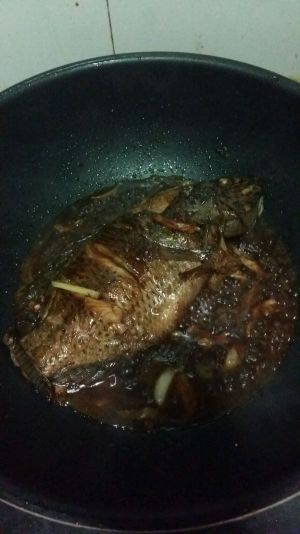 把调好芡汁到锅里加点水大火烧开,之后把鱼放里小火炖熟!