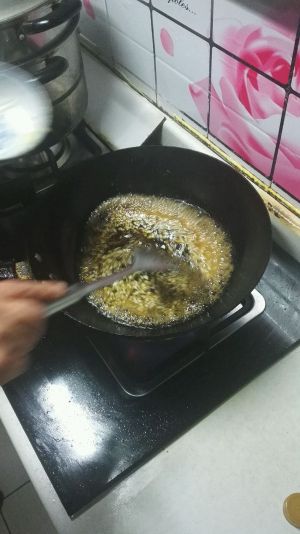 加醋之后锅里沸腾了,搅拌糖完全化开