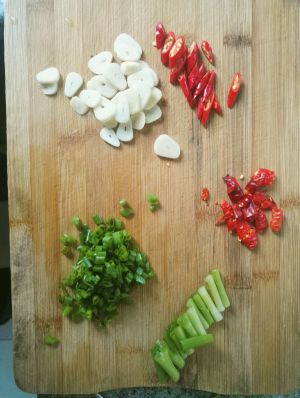 蒜瓣拍扁,姜切丝,干辣椒剪掉一角(这样辣味出来的更快),花椒备好。