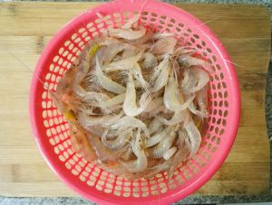 对虾去虾线,清理干净,沥干水分。加少许黄酒(料酒亦可)腌制15分钟左右。