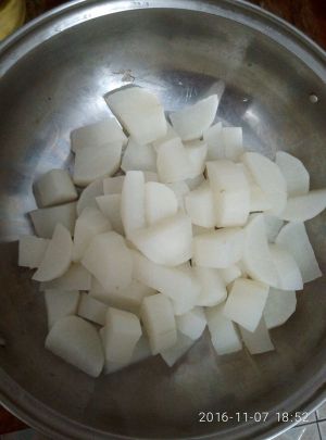 准备上述食材,牛肉切2.5-3厘米见方,焯水备用。