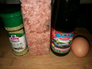 把肉馅放入容器后,需要撒上佐料提味。盐,胡椒粉,蚝油,葱姜蒜粉等……这个步骤主要是提升狮子头的味道,完全按照个人喜好添加,能去除猪肉