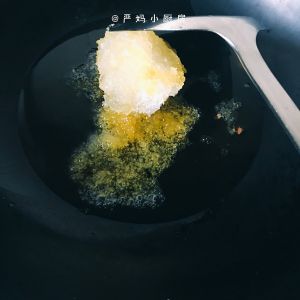 锅内倒入适量油开中小火,放入冰糖满满熬制融化