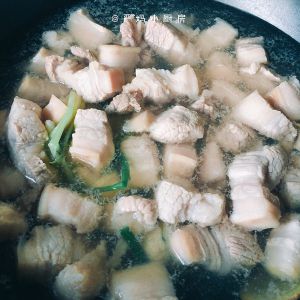 五花肉切块➕姜、葱、料酒焯水后捞出沥干