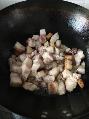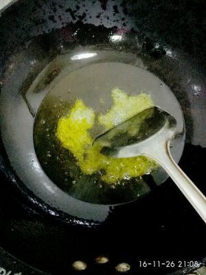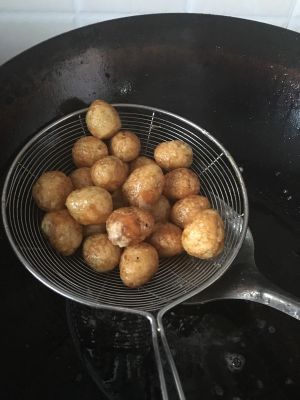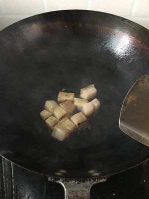烧热油,到8成热,倒入肉块,炸制3-4分钟成黄色捞出。