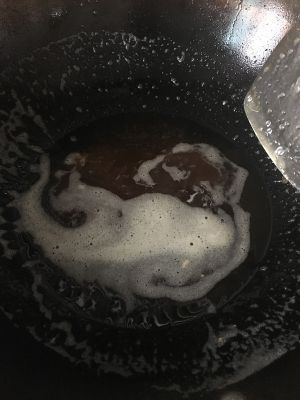 锅烧热,放适量油烧热,放三勺白糖,(冰糖最好爱上色),炒化变色。