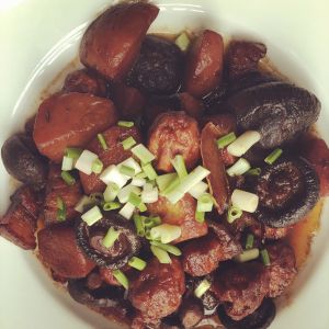 大约半小时后,程序结束,肉已炖熟,散汽,汤汁不少。
