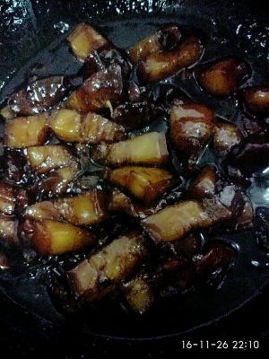 倒入炒锅内,大火收汁3-5分钟,红烧肉即成。