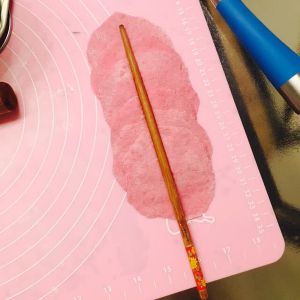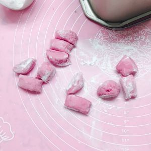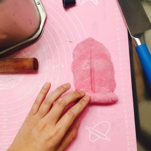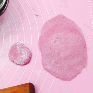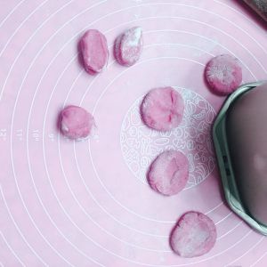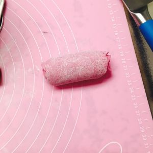 待用的面团盖上保鲜膜,防止表皮干裂。