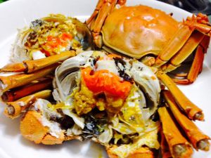 凉水入锅、直接放蒸屉、蟹肚向上(防蟹黄、蟹膏流出),每只蟹肚放一姜片、上汽后15分钟即可。