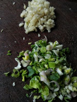 把蒜苗蒜子剁得碎碎的,好香啊!