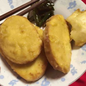 将切好的馒头片放入搅拌好的鸡蛋液中,均匀覆盖馒头片,放入沸腾的油中炸至微黄,翻两次馒头片,根据自己口感,喜欢软的口感少炸一会,喜欢酥脆的多炸一会,出锅就可以享用啦。